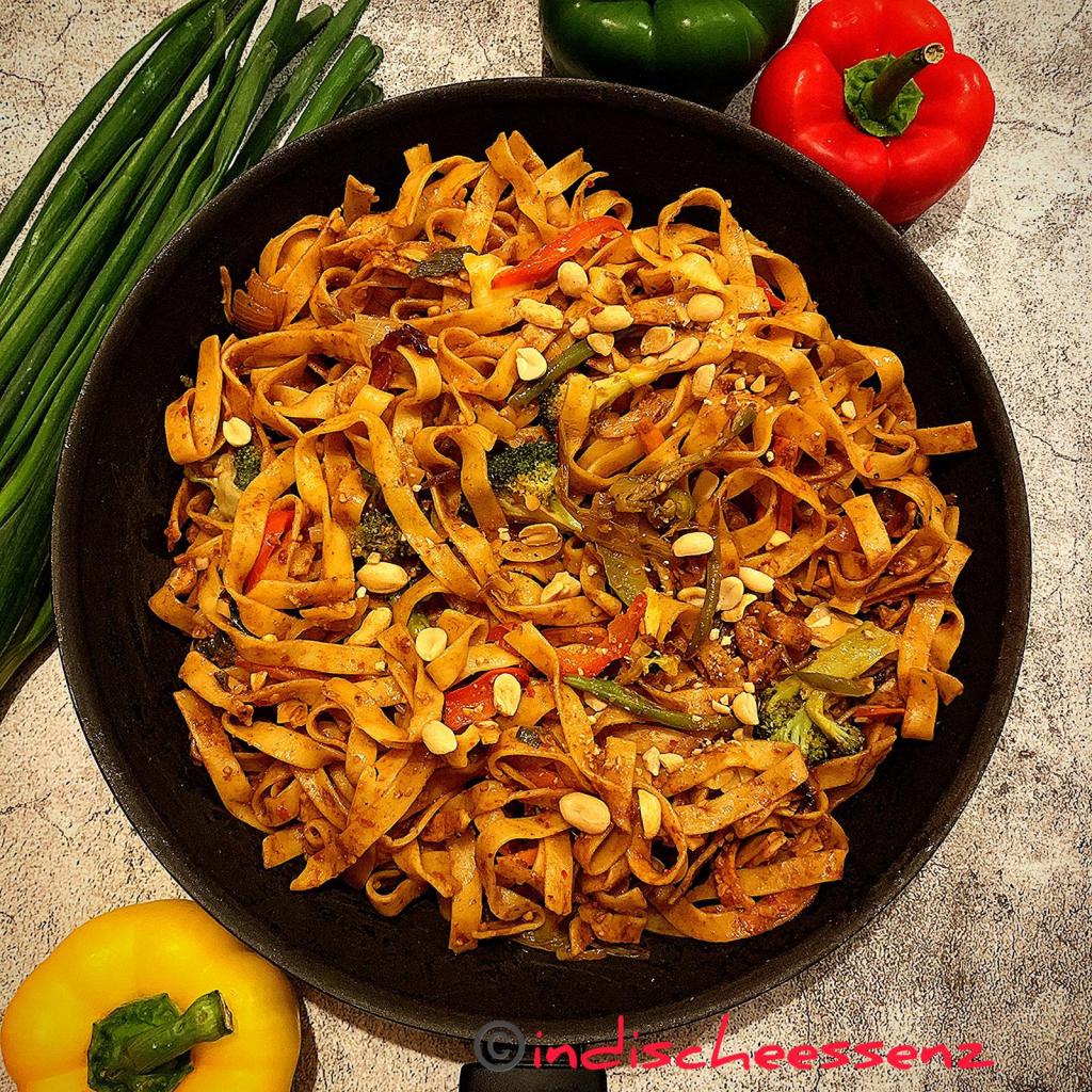 Pad-Thai is generally flat rice noodles, but you can replace it with any noodles! And it tastes great.