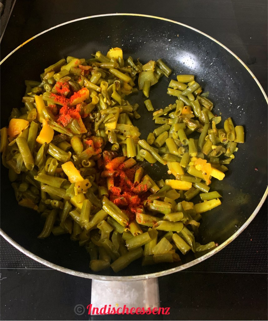 The Beans-potato fry is simple with only salt, turmeric and 1/2 spoon chilly powder!