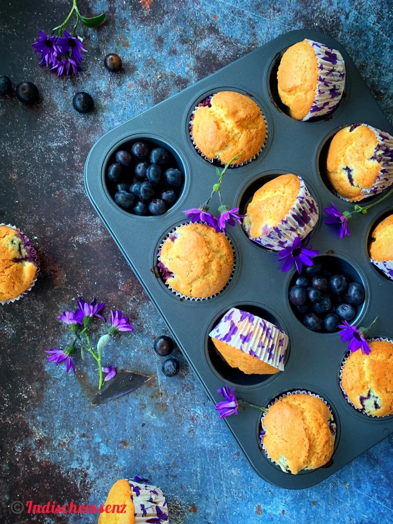 Überprüfen Sie mit einem Zahnstocher, der in die Mitte des Muffins gesteckt wird, der mit Krümel herauskommt, nicht mit Teig. Sobald der Muffin fertig ist, abkühlen lassen.