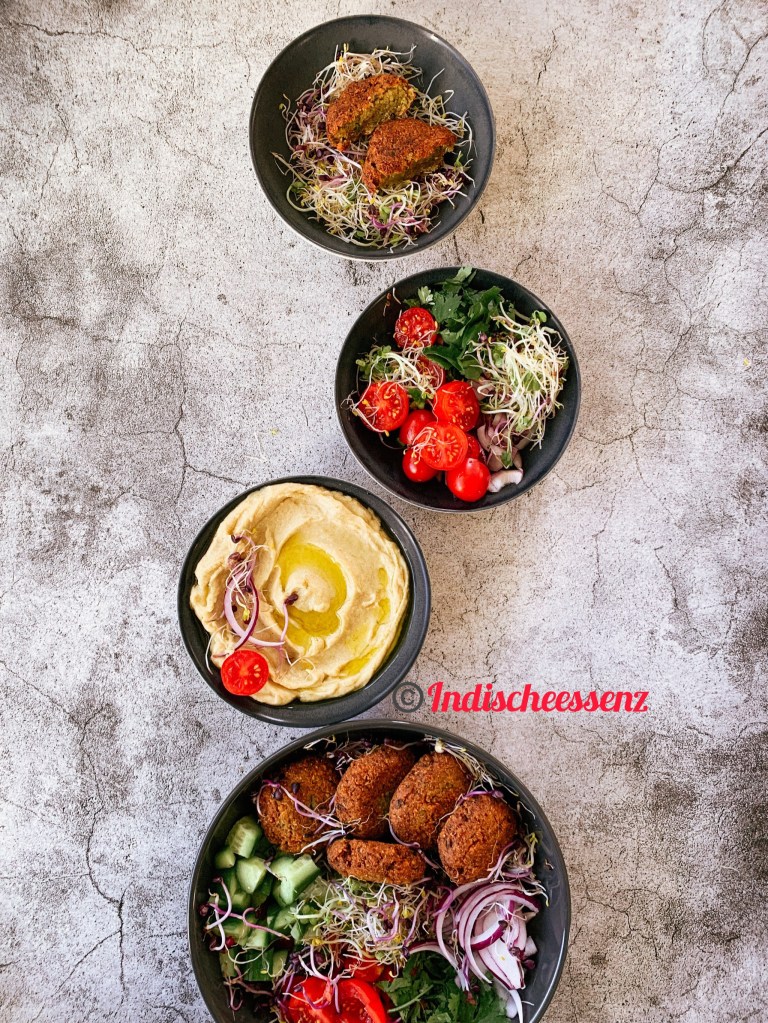 Try this delicious Falafel without any fancy ingredients. Served with homemade Hummus and fresh Salads.
