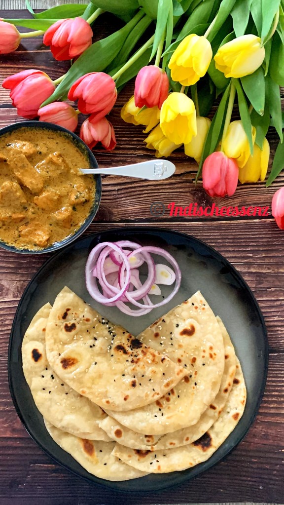 Indisches Naan Brot mit Hühnerfleisch in Cashew-SoĆe
